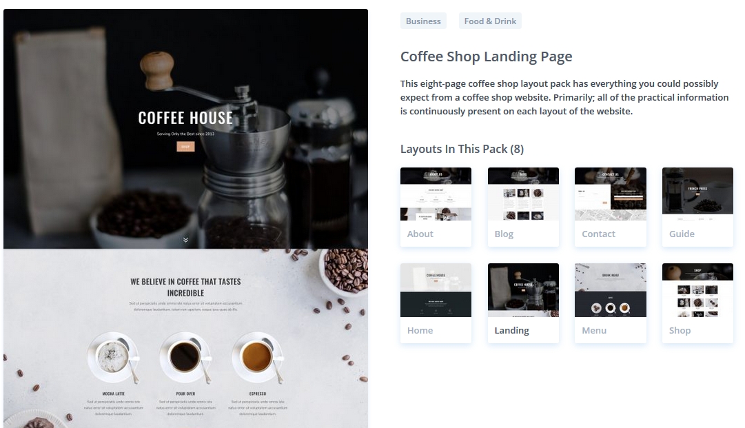 Coffee Shop DIVI Click for Demo Dave Lancaster2019-12-30T05:26:24+00:00 Related Posts Plant Nursery DIVI Gym DIVI Bistro DIVI Tavern/Bar DIVI Candy DIVI